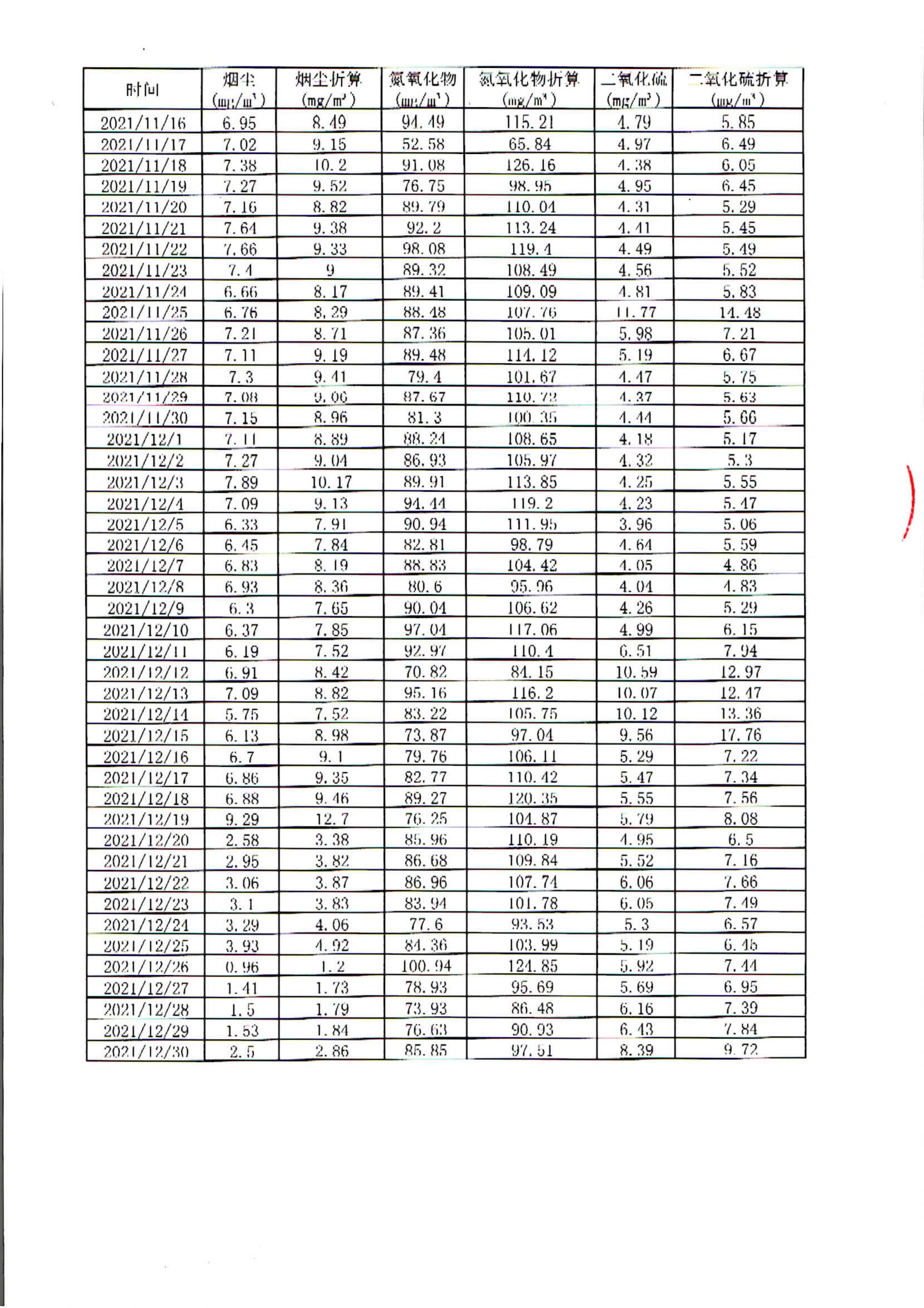 晓星氨纶(广东)有限公司2021年废气在线数据公开信息