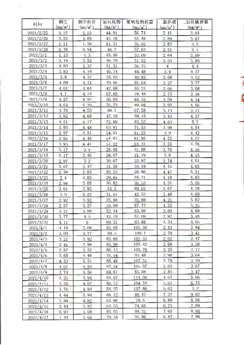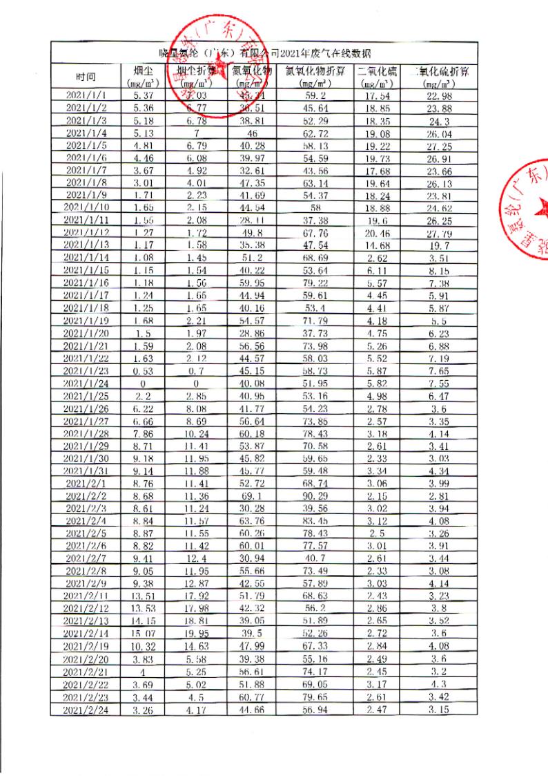 晓星氨纶(广东)有限公司2021年废气在线数据公开信息